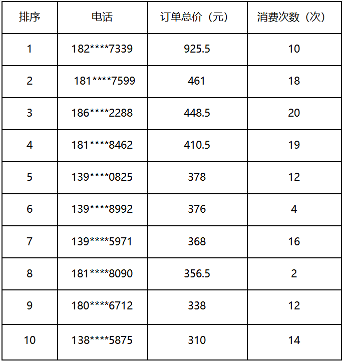会员消费金额之星