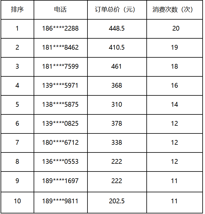会员消费次数之星