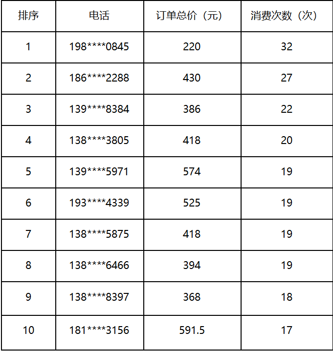 会员消费次数之星